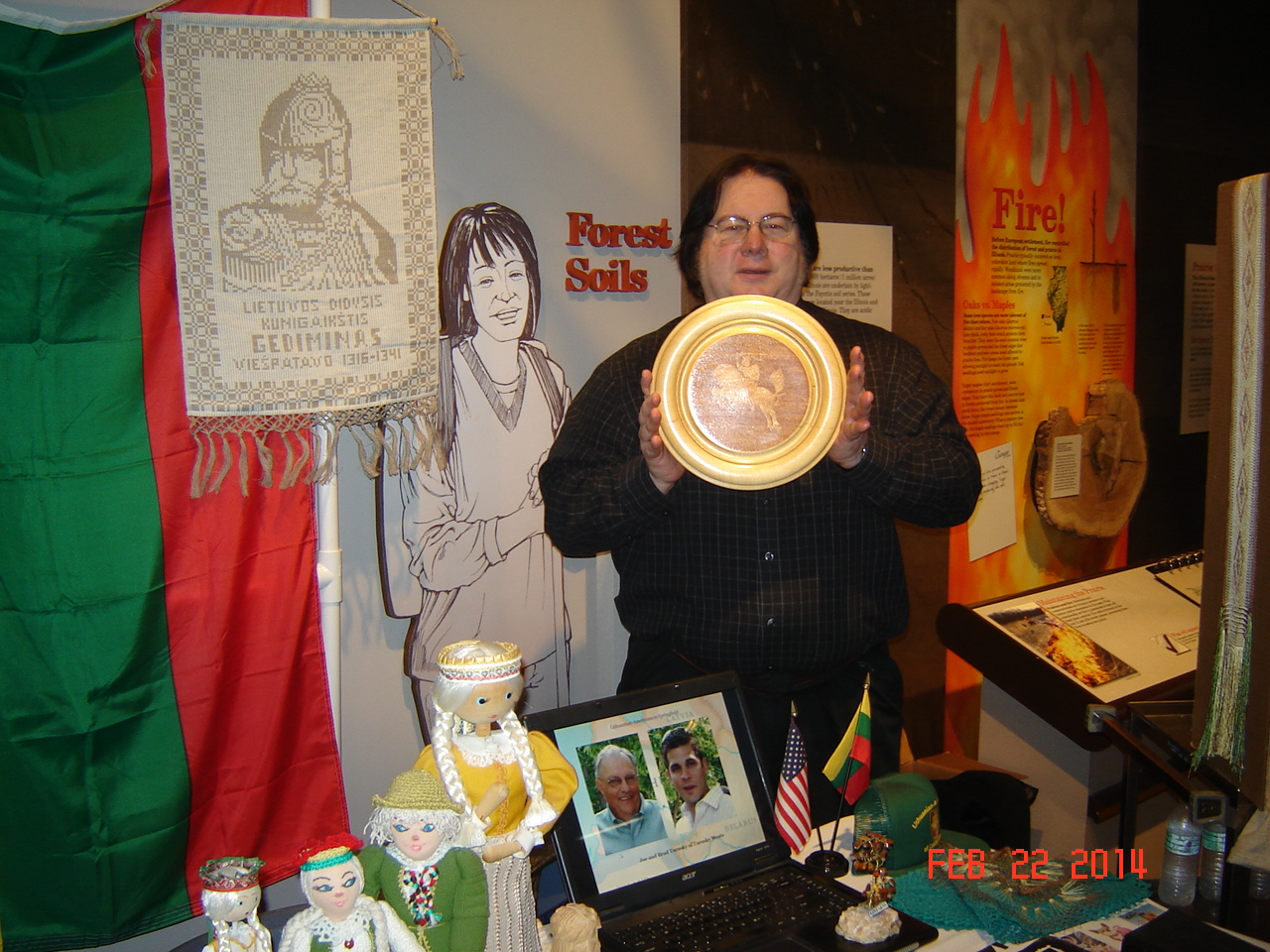 Our exhibit included amber jewelry and art, dolls in national costume, a person in national costume, flags, linens, ceramics, books, story boards, and a continuous PowerPoint display showing the faces of Springfield Lithuanian-Americans Senator Dick Durbin, radio announcer Sam Madonia, Brad and Joe Turasky, Debbie Davis Ritter and her sons Dalton and Noah, Paulette George, Elaine Kuhn, Dr. John Kwedar, Joan and Dan Naumovich, and others.