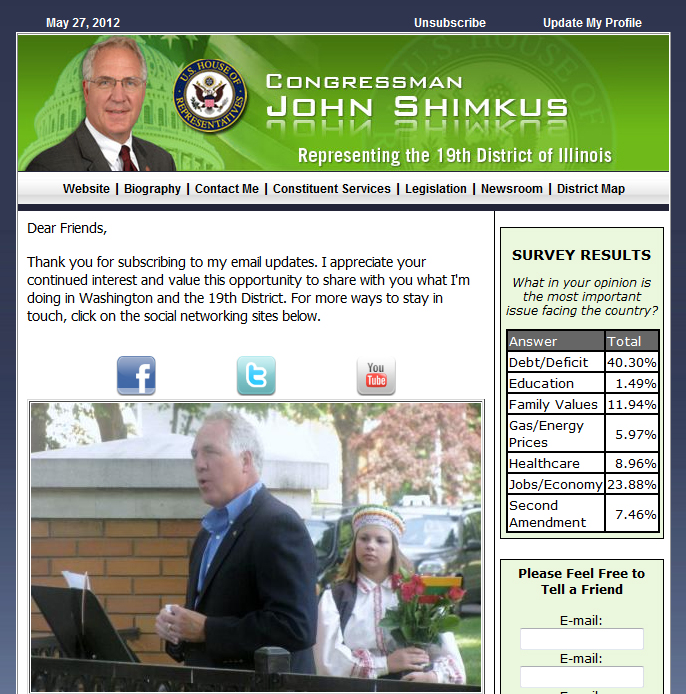 Marker ceremony noted in Shimkus newsletter Congressman John Shimkus, a Lithuanian-American, attended the Lithuanians in Springfield marker ceremony in May and noted it in his email newsletter. Share this:Share Click to email a link to a friend (Opens in new window) Email Click to share on X (Opens in new window) X Click to print (Opens in new window) Print Click to share on Pinterest (Opens in new window) Pinterest Click to share on Facebook (Opens in new window) Facebook Like Loading...