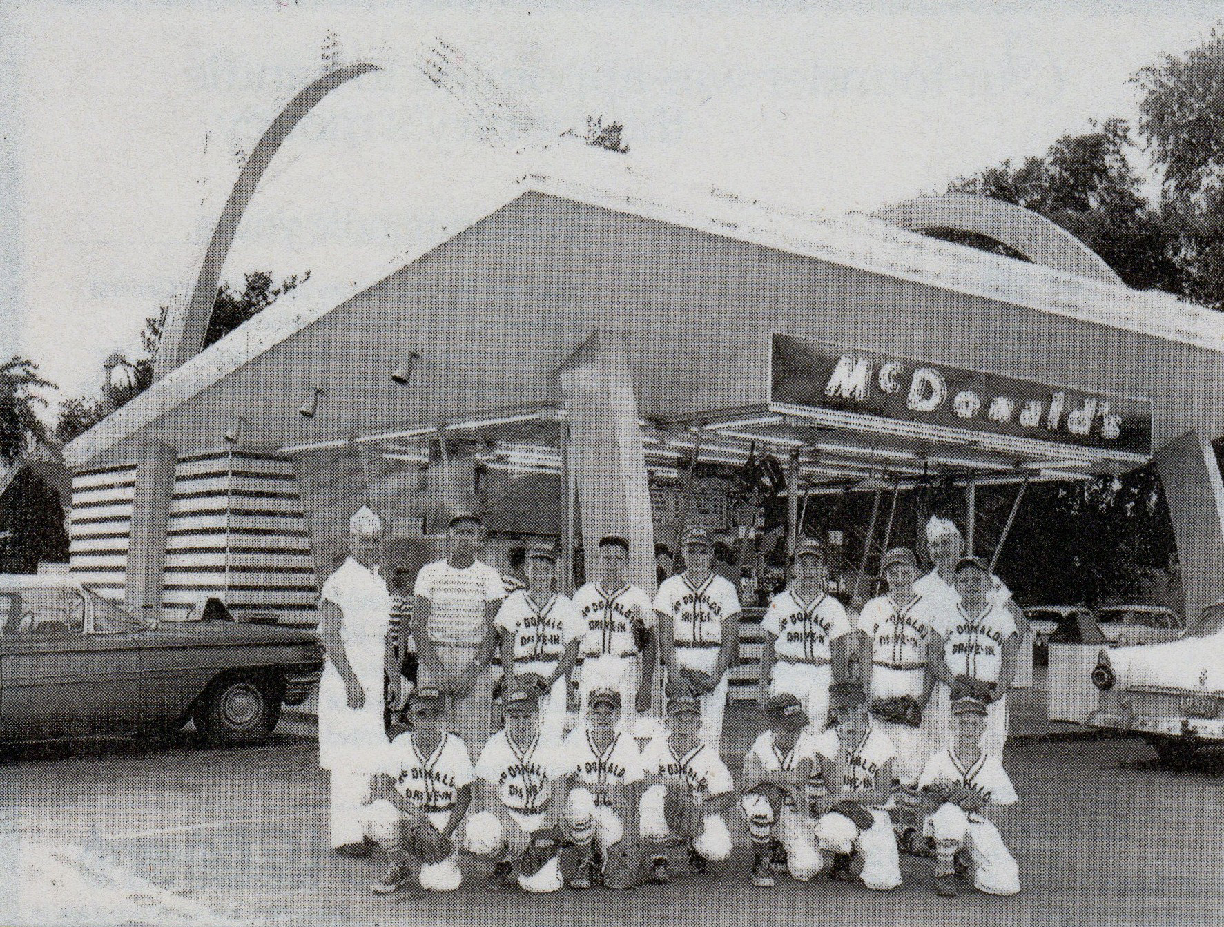 The McDonald’s Drive-in Little League Team poses in front of the chain’s first franchise in Springfield on South Sixth Street in 1961. Source: Illinois State Journal, April 27, 1999.
