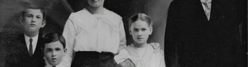 Bobby Pokora holding Bobby Banzin, Margaret (Magdalena) Banzin Kellus holding a Kellus grandbaby, and daughter-in-law Olga Kellus with another of her children on far right.