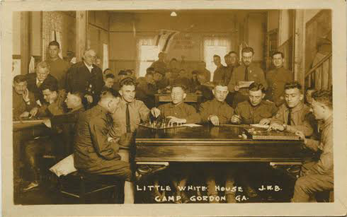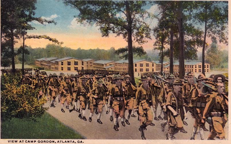 The influx of foreign-born inductees grew so numerous by the spring of 1918 that the U.S. Infantry created “development battalions” of non-English speaking soldiers. At Camp Gordon near Atlanta, an experiment was conducted in the training of several thousand non-English speaking draftees, who were divided into three groups: 1.) a Development Battalion of physically fit men; 2.) a Labor Battalion of disloyal and enemy aliens and 3.) a Non-combatant Service group of physically unfit men with a proficiency in a trade. At Camp Gordon, the two most populous ethnic companies were Polish-born and Italian-born soldiers. Training in the soldiers’ native tongues was supplemented by instruction in English grammar.