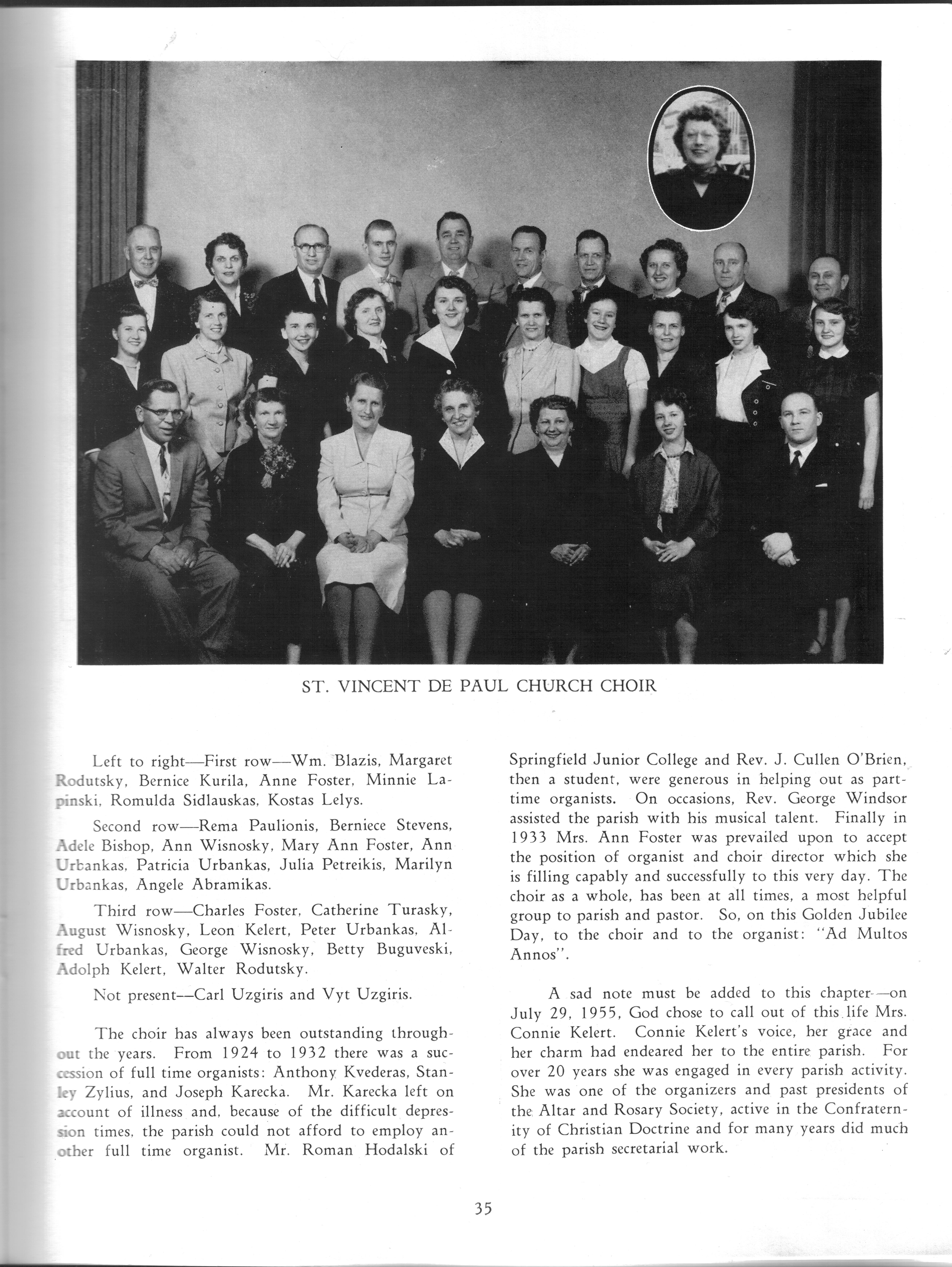 The church choir with names, from 1956 Jubilee book